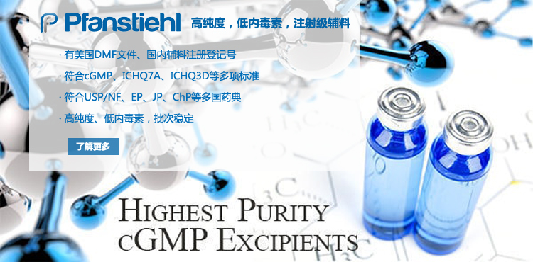 “熱烈祝賀Pfanstiehl的注射級甘氨酸Glycine(G-140)喜獲CDE登記號F20250000403, 這是Pfanstiehl產品獲得的第18個CDE登記號!”甘氨酸在醫藥輔料制劑中應用廣泛,, 可作為緩沖劑,增溶劑,穩定劑等,具有諸多優勢。Pfanstiehl秉承一貫高品質理念,為滿足全球生物制藥行業對于高品質甘氨酸的需求,隆重推出的注射級甘氨酸Glycine (G-140), 具有超高純度,超低內毒素,超低金屬殘留的特點,單獨檢測29種金屬離子,并且新增DNA,RNA,DNA酶,RNA酶和脂肪酶,亞硝酸鹽等多項質量指標的檢測,符合多國藥典規定(USP, EP, BP, JPE, ChP),可用于生物治療性藥物和疫苗的生產。產品信息:· 產品名稱:Glycine, High Purity, Low Endotoxin, Low Metals, USP, EP, BP, JPE, ChP (G-140)· 中文名稱:甘氨酸· 分子式:C2H5NO2· 分子量:75.07 g / mol· CAS號:56-40-6· 產品貨號:G-140產品特點: · 超高純度,超低內毒素,超低微生物含量,超低金屬雜質殘留· 質量指標新增DNA,RNA,DNA酶,RNA酶,脂肪酶和亞硝酸鹽檢測· 符合多國藥典:USP, EP, BP, JPE, ChP· 符合ICH Q3D標準· 符合GMP標準· 已獲DMF和CDE登記號 產品應用:· 緩沖劑· 穩定劑· 增溶劑如果您對Pfanstiehl注射級別Glycine G-140感興趣,歡迎聯系Pfanstiehl 中國區代理商北京西美杰科技有限公司獲得如下詳細的產品概況說明文件和測試樣品。Pfanstiehl Inc.最新產品系列如下,歡迎聯系北京西美杰科技有限公司獲取100g裝免費樣品。北京西美杰科技有限公司為Pfanstiehl中國代理,為客戶提供完善的技術支持與售后服務。歡迎撥打西美杰客服電話400-050-4006或者登陸網站www_xmjsci_com.feigen.com.cn了解更多信息。 更多>
